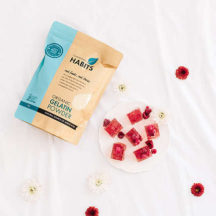If you like to cook, you’ll love this gelatin! It is so versatile and can be used to make breads, pancakes, soups, homemade jellies, panna cotta, cheesecake, to thicken sauces and added to hot drinks. This beautiful Gelatin Powder is a great source of protein and amino acids. And, as to be expected from Changing Habits products, it is free from additives, preservatives, colouring and flavours.